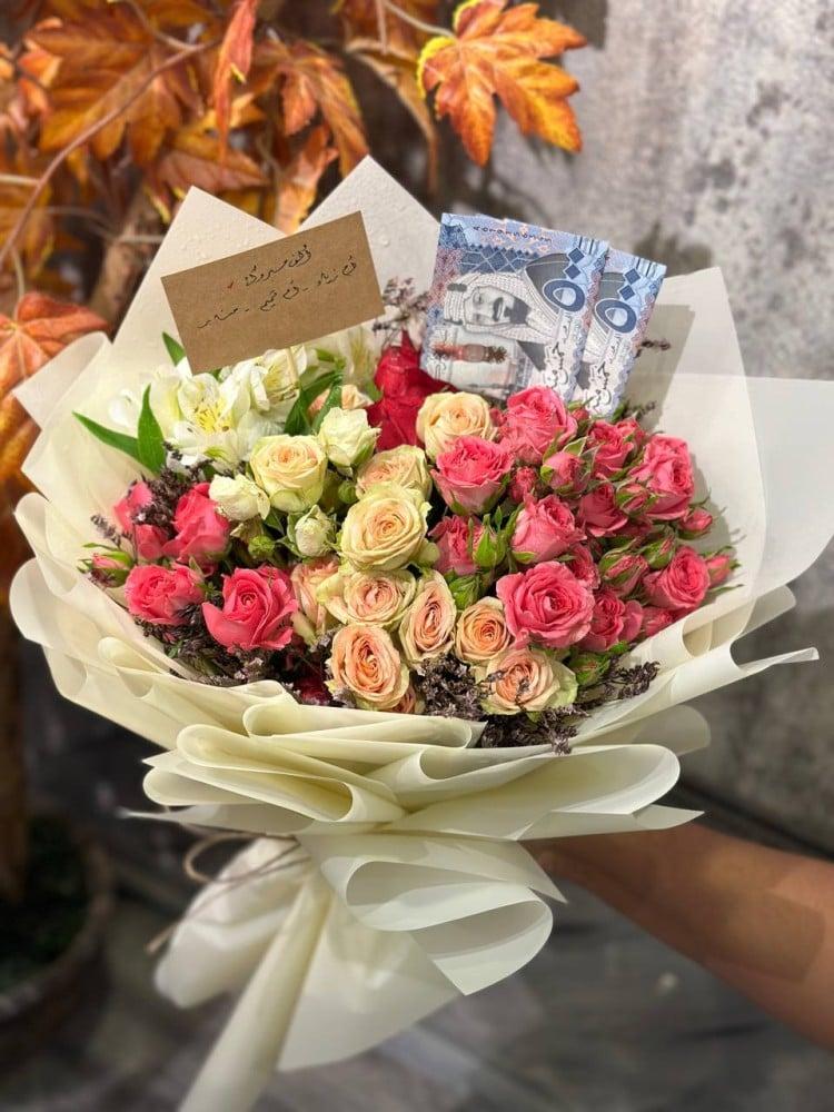 تأتي الباقة بتغليف أنيق يضفي عليها لمسة من الفخامة، لتجعل من لحظة الإهداء ذكرى لا تُنسى. أهديها لمن تحب، ودع الورود تتحدث