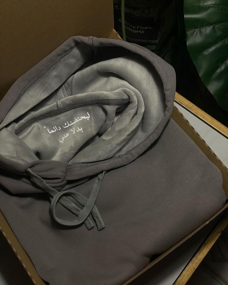 • تخصيص الهودي: تقدر تختار تغليف خاص مع كرت برسالة منك، أو تغير الرسالة المكتوبة داخل الهودي حسب رغبتك.