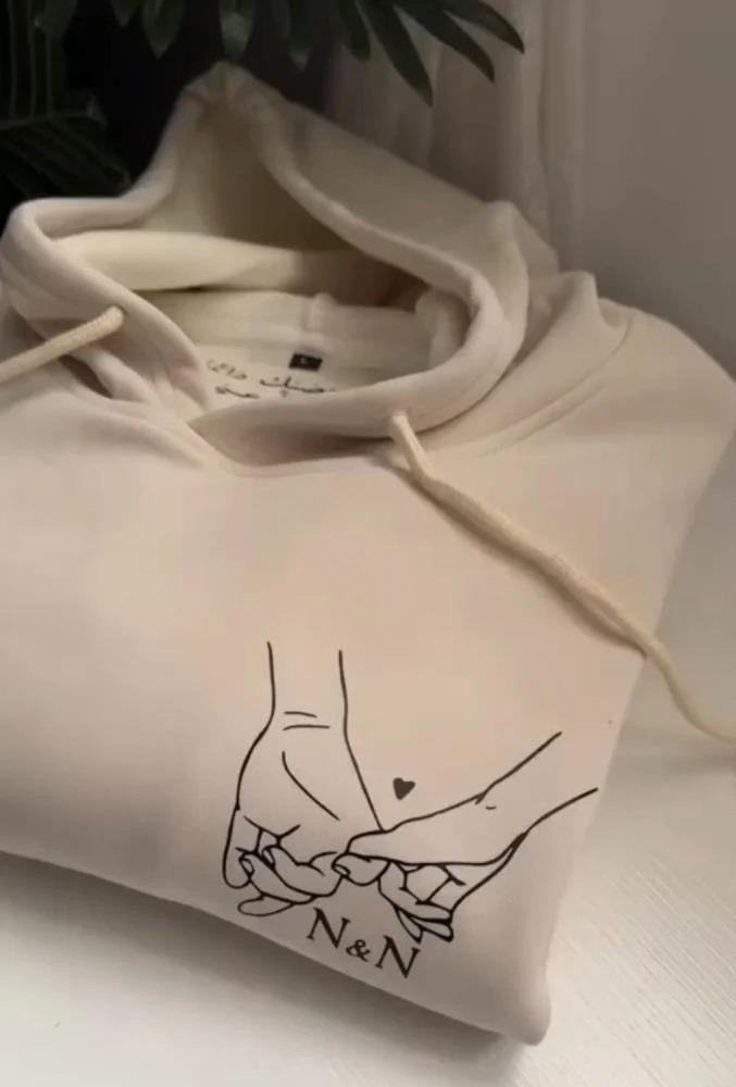 - تصميم فريد: يجمع بين يديك ويد من تحب مع الأحرف الأولى من اسميكما، مما يجعله قطعة لا تُنسى.